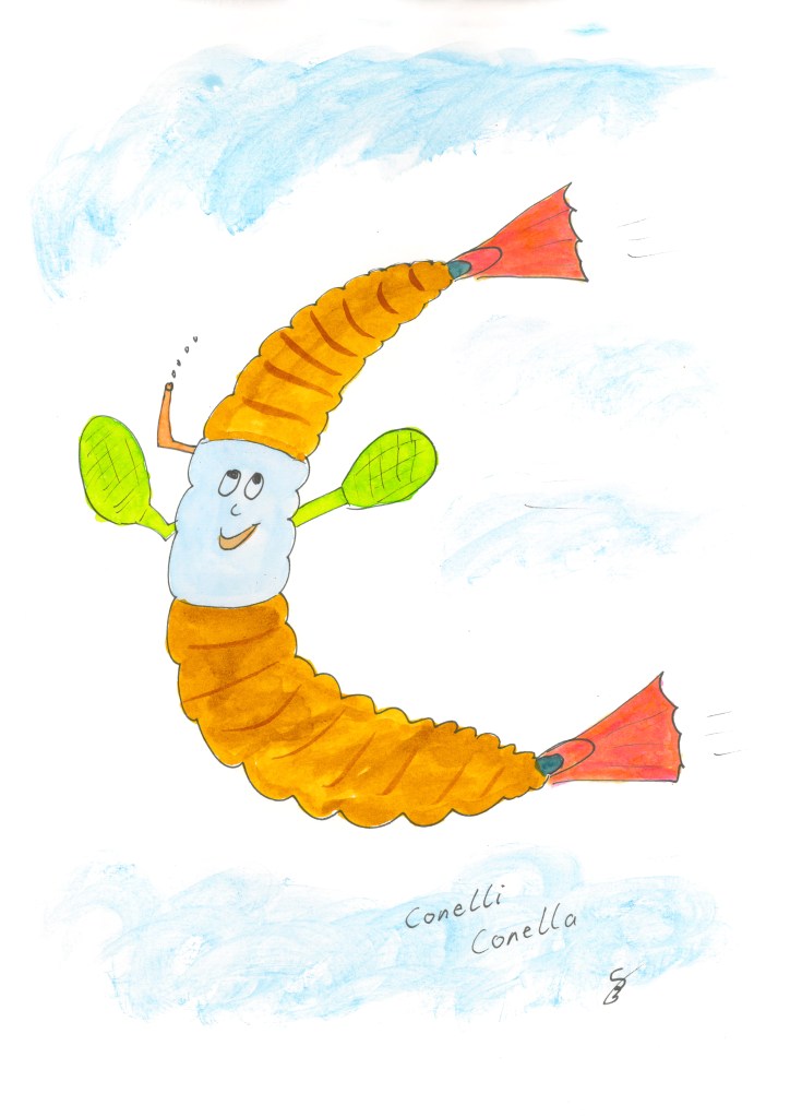 Turbelig bringt mit Schwung alles durcheinander, sie fegt durch wie mit einem Besen und wirbelt dabei wie ein Herbststurm die Blätter, alles auf. Leerolino tobt mir ihr gerne durch die Gegend und lässt sie auch gerne durch sich hindurchturbeln. Moralin ist immer ein bisschen fassungslos, weil Turbelig seine Bömbchen ausbläst und Wexa von Feuer genießt Ihre turbomäßige Antriebskraft. Turbelig macht das aber nicht mit Absicht oder vorsätzlich, sie turbelt einfach gerne durch die Welt.