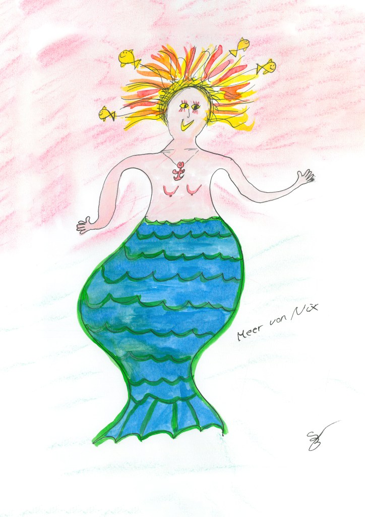 Eine extra tolle Kurve mit nichts als Persönlichkeit, völlig einerlei, was andere sagen und wie sie es finden, steckt da des Wesens volle Vielfalt und Schönheit drin. Nichts, was die Masse will und für gut befindet, nichts, wonach die Masse strebt und doch mehrere haben. Nichts ist manchmal das, was alle haben und keiner darüber spricht und es doch nicht für die Masse zum Maß wird. Meer von Nix erfreut sich an allem, was sie hat und damit nicht hat. Sie ist die figurierte Freiheit zu Sein, wer man ist. Es ist ihr nicht egal, was die anderen sagen, gleichwohl nimmt sie es nicht stets zum Anlass danach zu streben, was andere wollen.