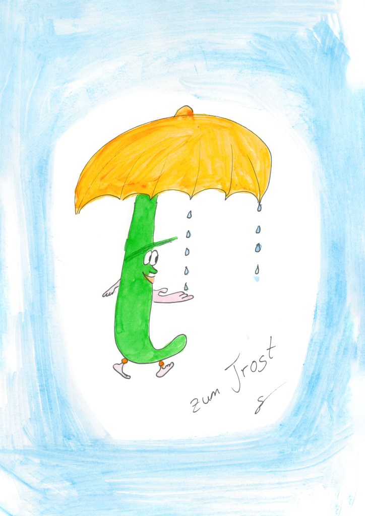 Ist immer da, wenn Trost gebraucht wird. Es ist herrlich, weil Zum Trost nicht meint, dass ihr Trost etwas löst, sie ist einfach da und fängt Seelentränen auf und hört der Seele zu, folgt aufmerksam den Worten und Gedanken und holt die eine oder andere Dramataturgi dazu.